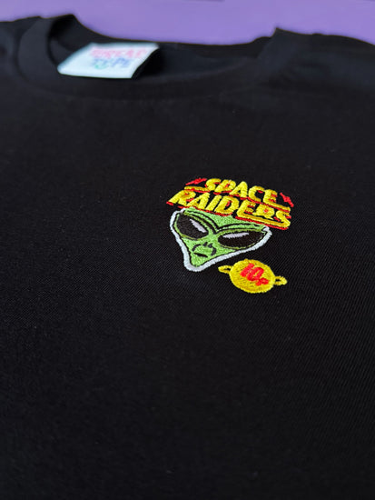 Nothing says 90s nostalgia quite like a pack of Space Raiders crisps tucked into your pocket on the way out of the corner shop. This embroidered design is a tribute to those after-school snacks that fuelled after school adventures and pocket-money choices. A subtle nod to the ultimate retro crisp, made for 90s kids who still enjoy the tang of pickled onion.