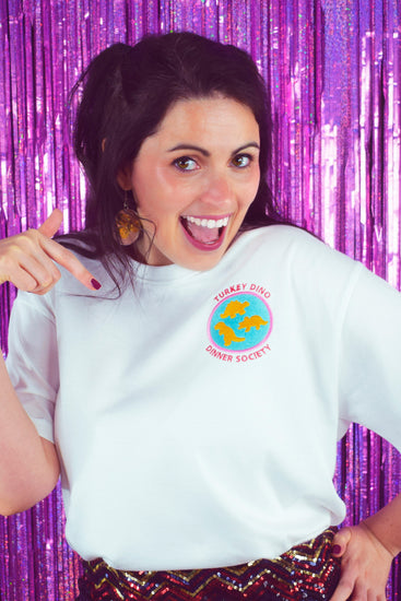 Turkey Dino Dinner Society Embroidered - T-shirt